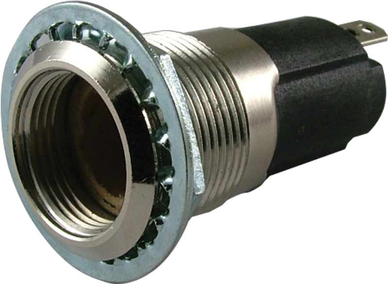Lamp holder. Relampable front panel indicators accept a variety of T-2 and T-3 ¼ miniature bayonet lamps. 11/16" chassis hole Total Length = 1.755" (solder lugs included in measurement) (extends about 1.68" from front of panel to end of solder lugs) Rating: 125V, 75W Threading: 9/16 - 24Available JewelsAmber L117Blue L120Clear L122Green L116Purple L121Red L115Violet L121VWhite L123