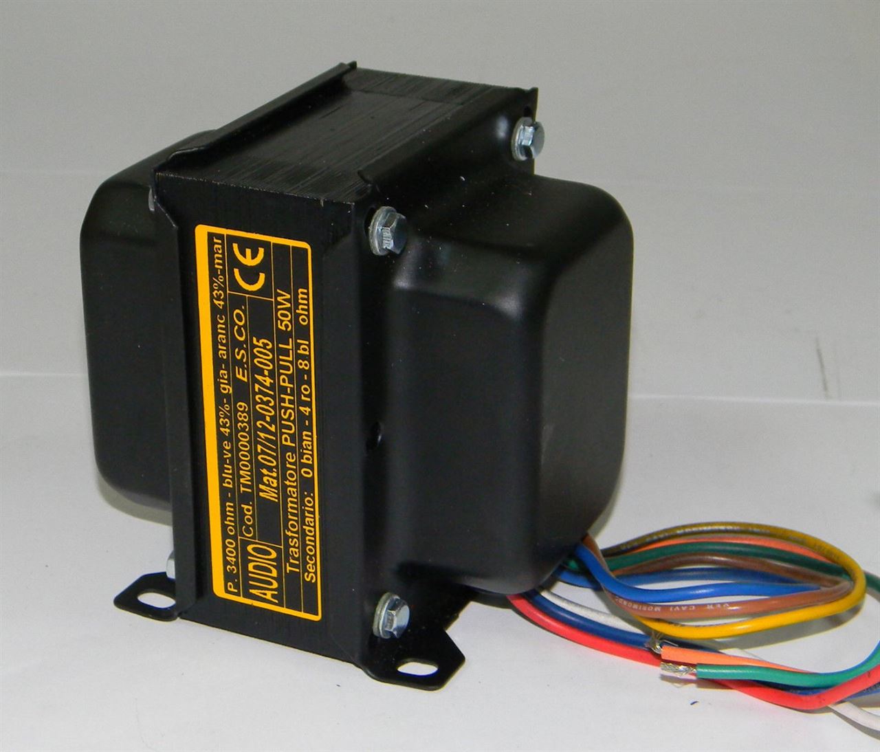 Potenza 50 W. P: 3,4 Kohm; S: 0-4-8 Ohm.
