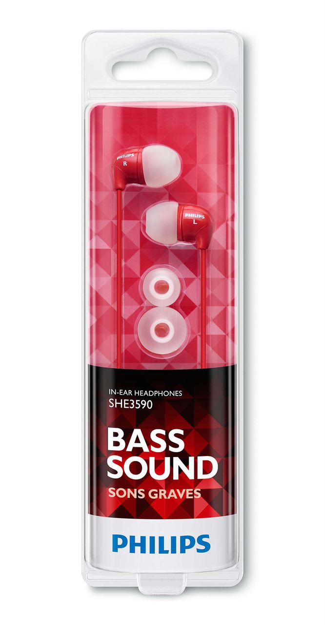 Philips SHE3590RD Cuffie stereo auricolari con cuscinetti morbidi In-ear Colore ROSSO