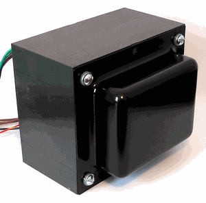 Also could be used to make a 70-90W mono power amp (depending on output tubes and rectifier) using the our output transformer. Secondary B+ winding is 720VCT (360-0-360) at 300mA with 55V bias tap, plus two 6.3VCT 5 amps and one 5V 4 amp tube filament and rectifier windings. Can use solid state rectifiers or any single tube rectifier with filament up to 5V at 4 amps (or 2 5AR4/GZ34 could be used in parallel) and sufficient B+ current rating. Usually 5AR4 or 5U4. Note, watch that the voltage isn't above capacitor ratings if solid-state rectifier is used!