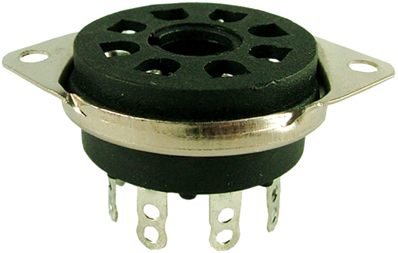 Socket - 8 Pin Octal, Saddle Plate, Black, Bottom Mount