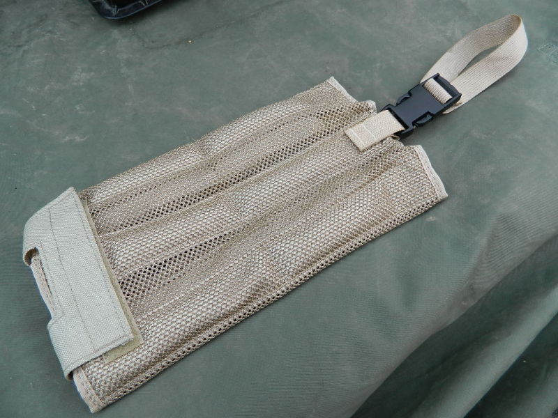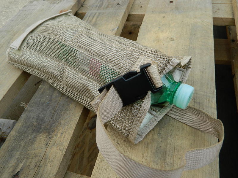 Costruito in cordura e rete plastica robustissima, particolarmente adatto in ambienti tattici estremi. Dotato di manico sganciabile per poterlo appendere in luoghi ventilati e asole con bottoni a pressione per fissaggio su cintura o spallacci tattici. Oggetto ad alta tecnologia.