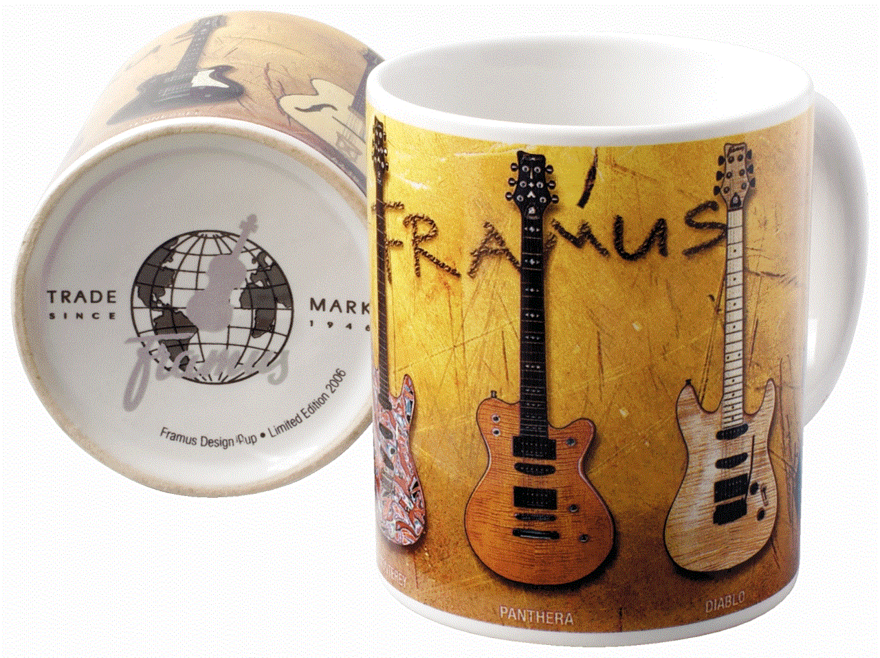 Tazza della WARWICK con riffigurati alcuni modelli di basso.