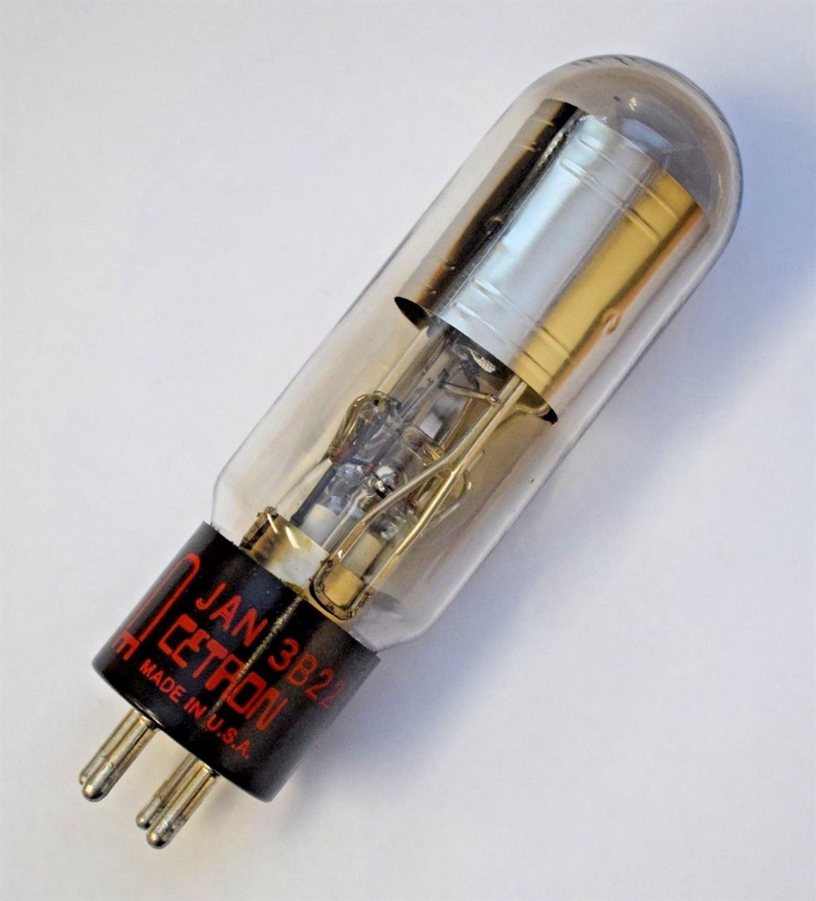Valvola rettificatrice con anodo al tantalio riempita allo xeno. 725 volt PI, operatività da 12 a 250V per anodo, 1000mA CC in uscita.