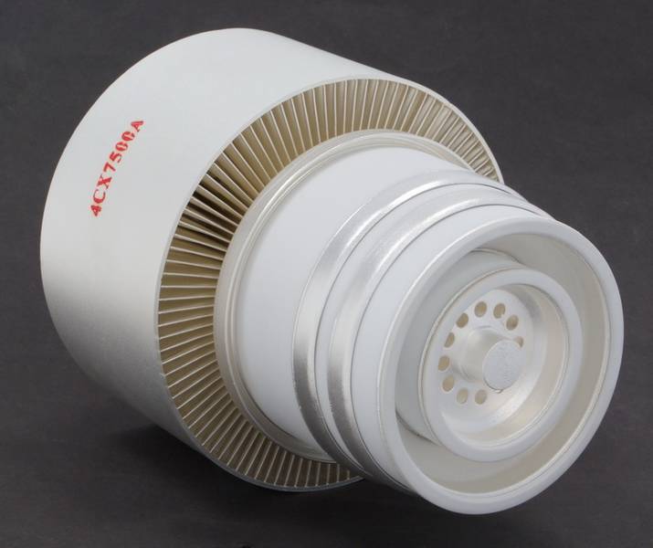 Il tetrodo di potenza per trasmissioni 4CX7,500A è principalmente impiegato per tramissioni radiofoniche.