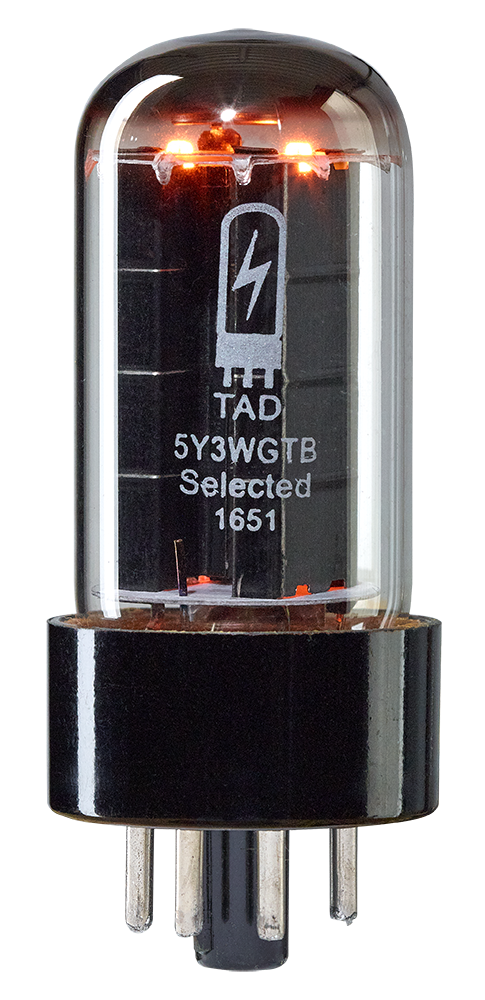 La 5Y3WGTB TAD Selected può sostituire la 5Y3GT. Presenta la tipica caduta di tensione delle NOS 5Y3 e la tensione anodica scende quando aumenta la corrente. Questo può causare una riduzione della potenza in uscita ed un minor volume.