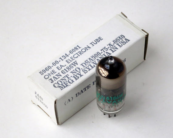 Valvola di eccezionalmente alta qualità JAN Sylvania Philips ECG 6186W. NOS da fornitura militare.