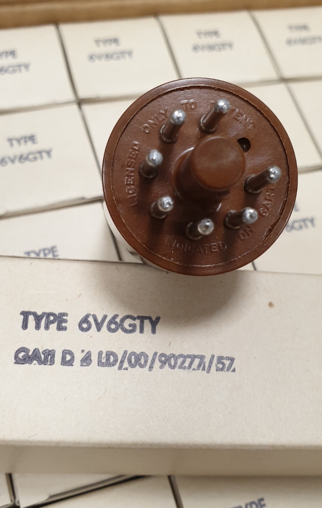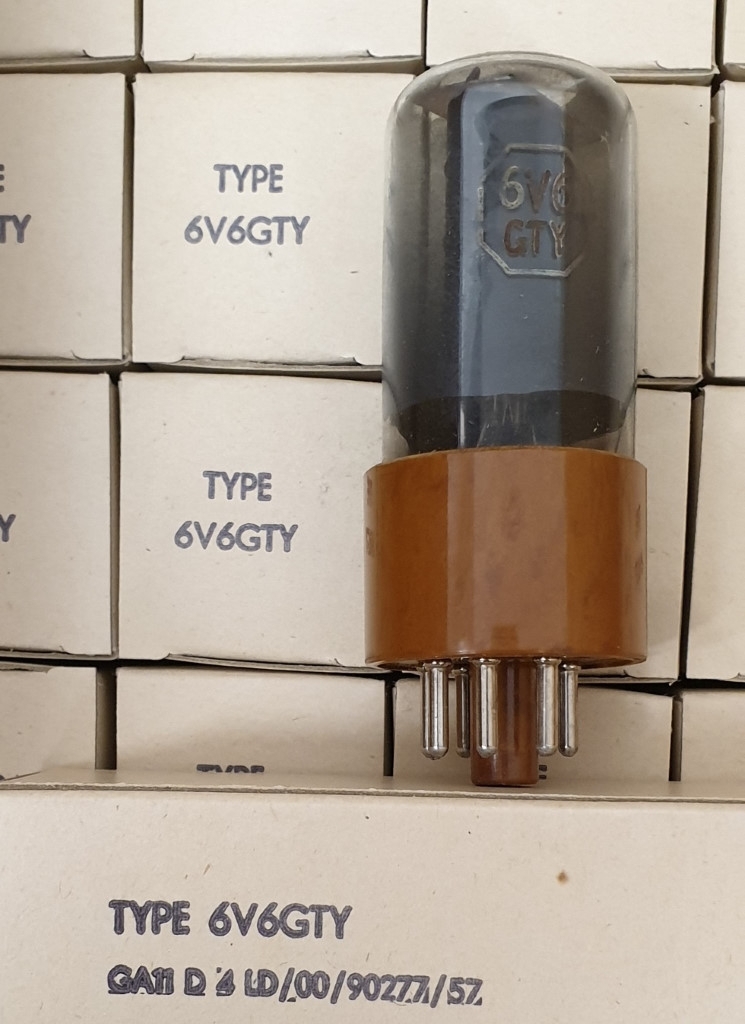 The "Y" from 6V6GTY stands for the superior quality brown phenolic resin base version which grants a higher heat resistance and higher insulation resistance.