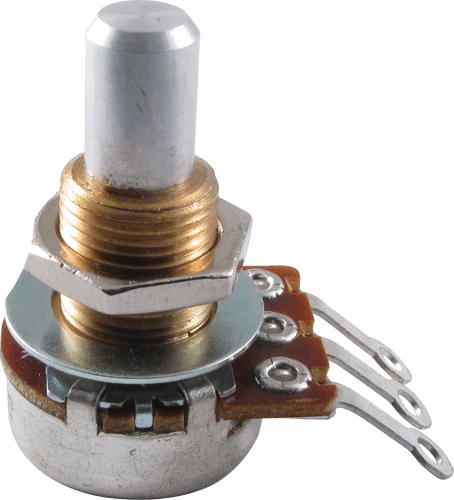 Mini potenziometro al carbone, asse liscio. Audio. 17 mm diametro corpo. Potenza ¼" watt, 300° rotazione. ¼" diametro asse. Occhielli a saldare. Filettatura ⅜" (9.5mm). Serie Bourns Mini Guitar pots. Questi sono ricambi retrocompatibili.