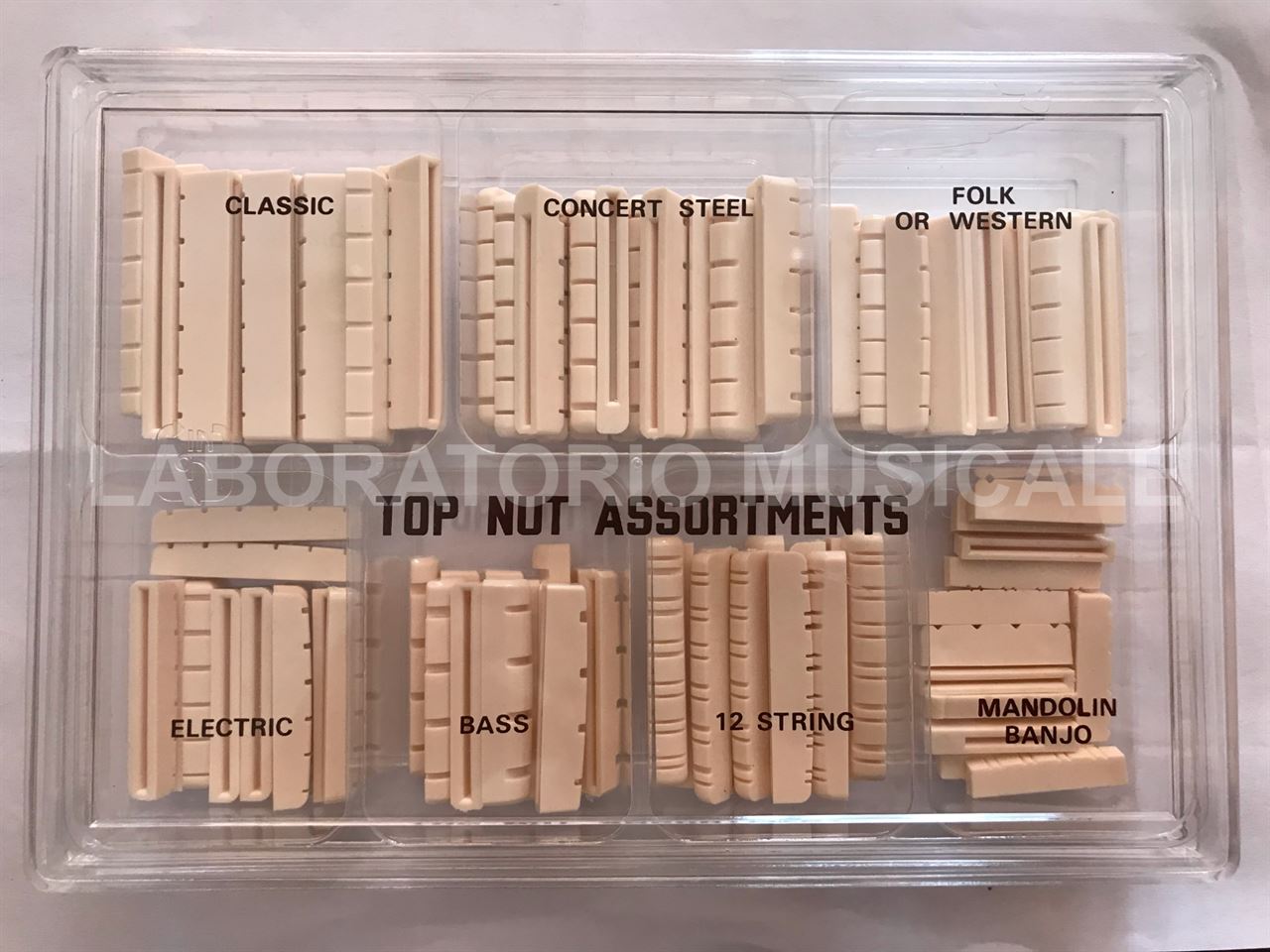 Capotasto fisso in avorio sintetico.Ricambio di alta qualità MADE IN JAPAN. Ideale per liutai.Misure: 48x8x6mm