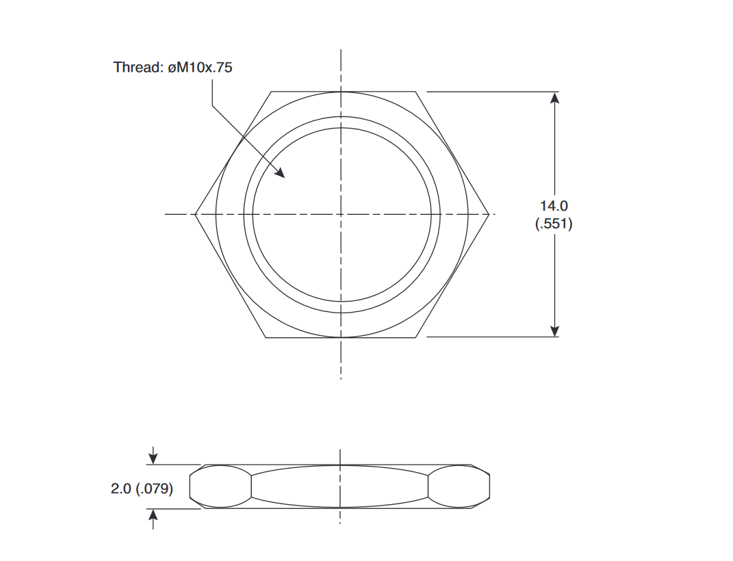 Dado M10x0.75 passo fine. Ricambio per potenziometri o prese telefoniche.