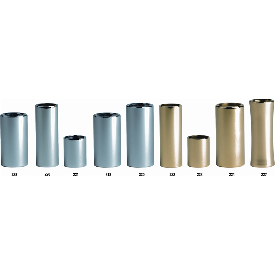 Slide in ottone. Scelti per il loro suono caldo, risuonante e "massiccio".Dimensioni: 19 x 22 x 60 mm