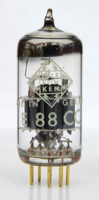 Telefunken E88CC prodotta in Germania (Ulma), col diamente marchiato, scatola originale, piedini dorati, NOS.