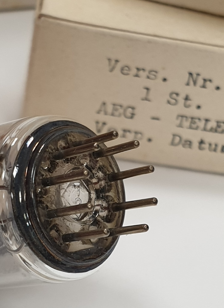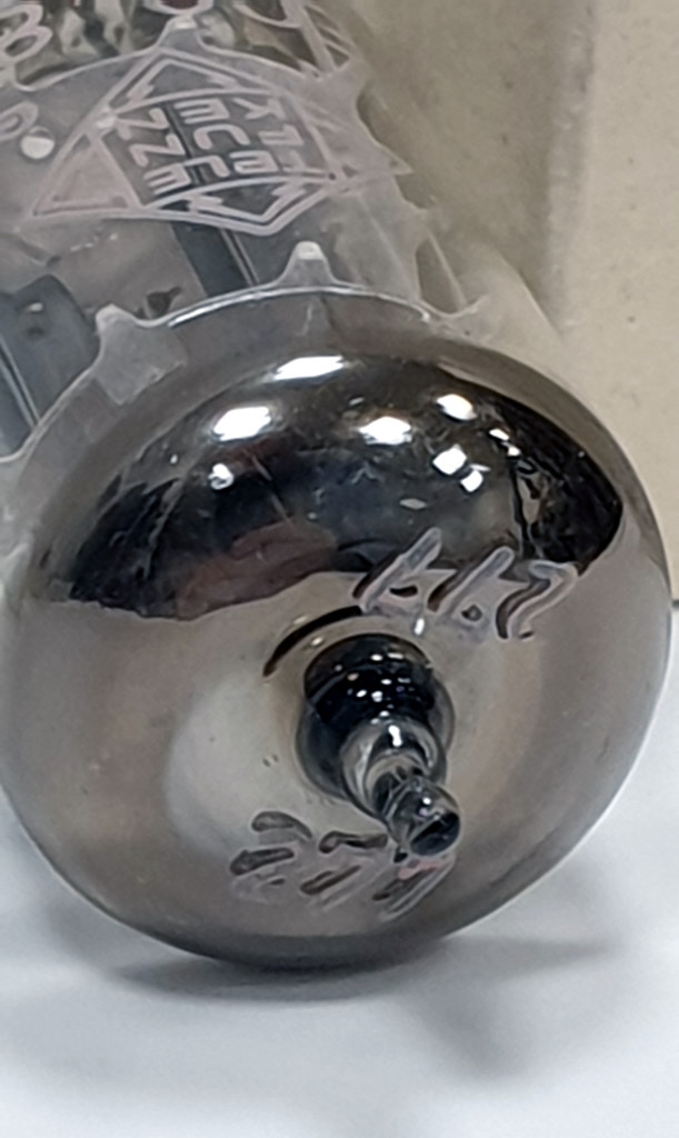 ECC82 Telefunken, talvolta rimarchiate od inscatolate Siemens, diamente impresso sul fondo, prodotte nello stabilimento si Ulma.