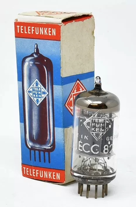 ECC82 Telefunken, talvolta rimarchiate od inscatolate Siemens, diamente impresso sul fondo, prodotte nello stabilimento si Ulma.