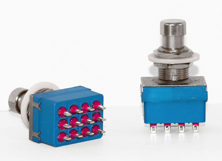 "Super Bypass" commutatore a pedale 4 poli/doppio scambio. Consente il controllo completo fino a 4 circuiti indipendenti.