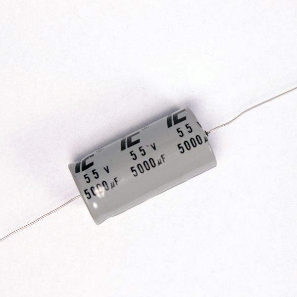 Condensatore elettrolitico tubolare, montaggio orizzontale, alta qualità costruttiva, bassa perdita. Temperatura massima di utilizzo 85° C. Toleranza -20%, +50%.