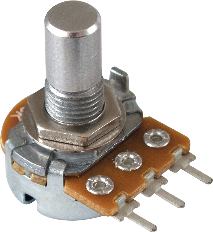Alpha, potenziometro con asse liscio e piedini a CS corti.