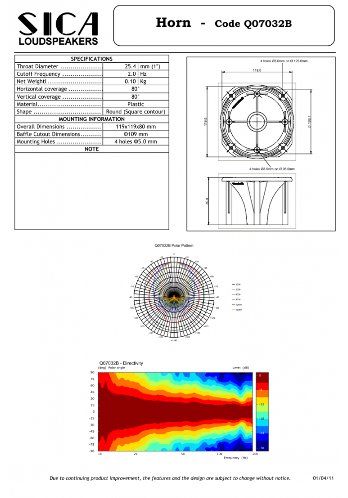 SICA Q07032B TROMBA QUADRATA 119 x 119 mm per tweeter
