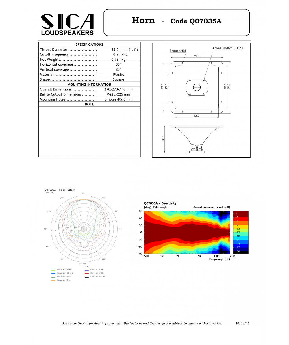 SICA Q07035A TROMBA 270 x 270 - Tromba per Driver a Compressione con gola da 1.5"