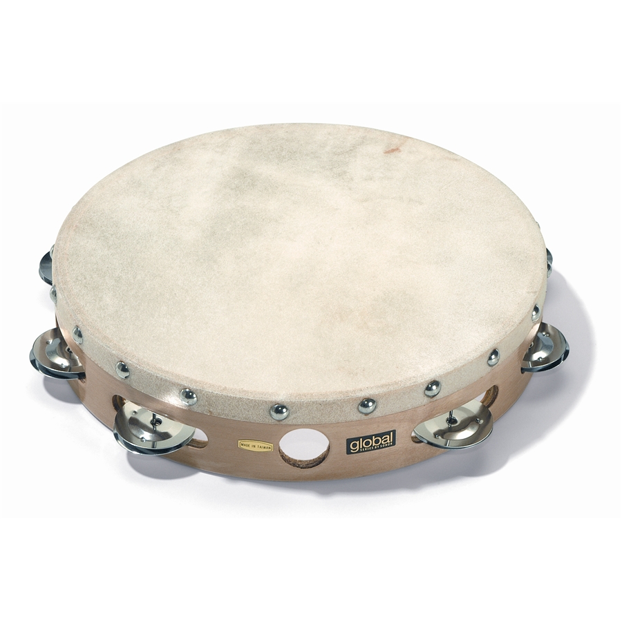 Tambourine, 25 cm dia., 9 jingles, pelle naturale