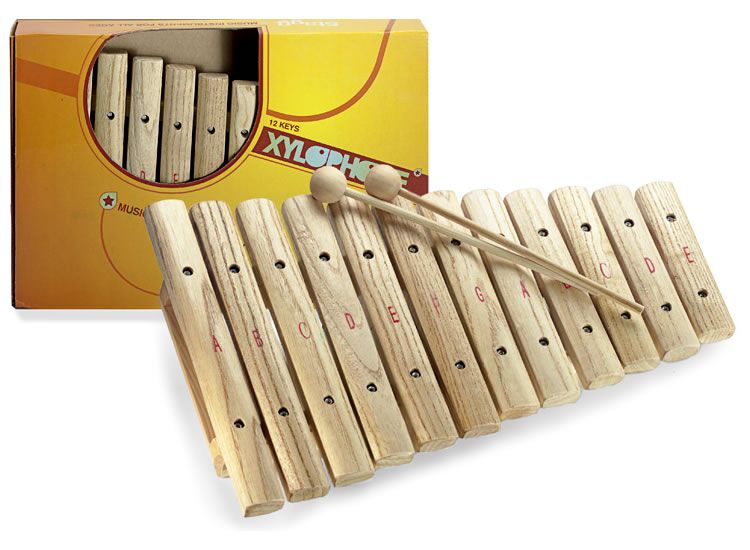 XILOFONO IN LEGNO 12 CHIAVI Xilofono a 12 chiavi in legno Battente incluso Dimensioni: 35,5 x 23,5cm.